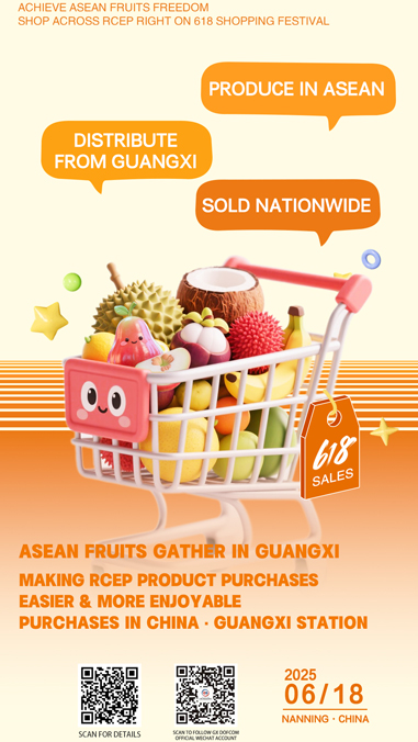 水果自由,買遍RCEP,就在廣西618。為突出廣西作為東盟水果及RCEP優(yōu)品進(jìn)入中國市場的首站及樞紐作用,加大進(jìn)口優(yōu)質(zhì)商品供給,以AI賦能大力推動?xùn)|盟水果及RCEP優(yōu)品匯聚廣西暢銷全國,滿足RCEP各國的獲得感、幸福感,促進(jìn)內(nèi)外貿(mào)一體化及消費(fèi)升級,助力共建RCEP消費(fèi)大市場,6月18日,“東盟水果 匯聚廣西 讓暢購RCEP更便利更美好——購在中國·廣西站”活動在中國—東盟特色商品匯聚中心舉行。
