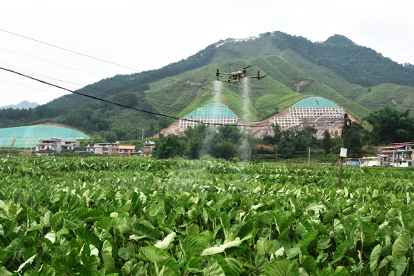 五月中旬,走進(jìn)昭平縣北陀鎮(zhèn)風(fēng)清村的炮彈香芋種植基地,只見農(nóng)業(yè)無人機(jī)螺旋機(jī)翼伴隨著巨大的轟鳴聲加速旋轉(zhuǎn),按照操作人員預(yù)先設(shè)定好的程序勻速飛往指定的噴灑地點(diǎn)?!翱萍及l(fā)展帶給我們農(nóng)戶的好處太大了,無人機(jī)播撒農(nóng)藥既省心又省力。”風(fēng)清村村民笑著說。