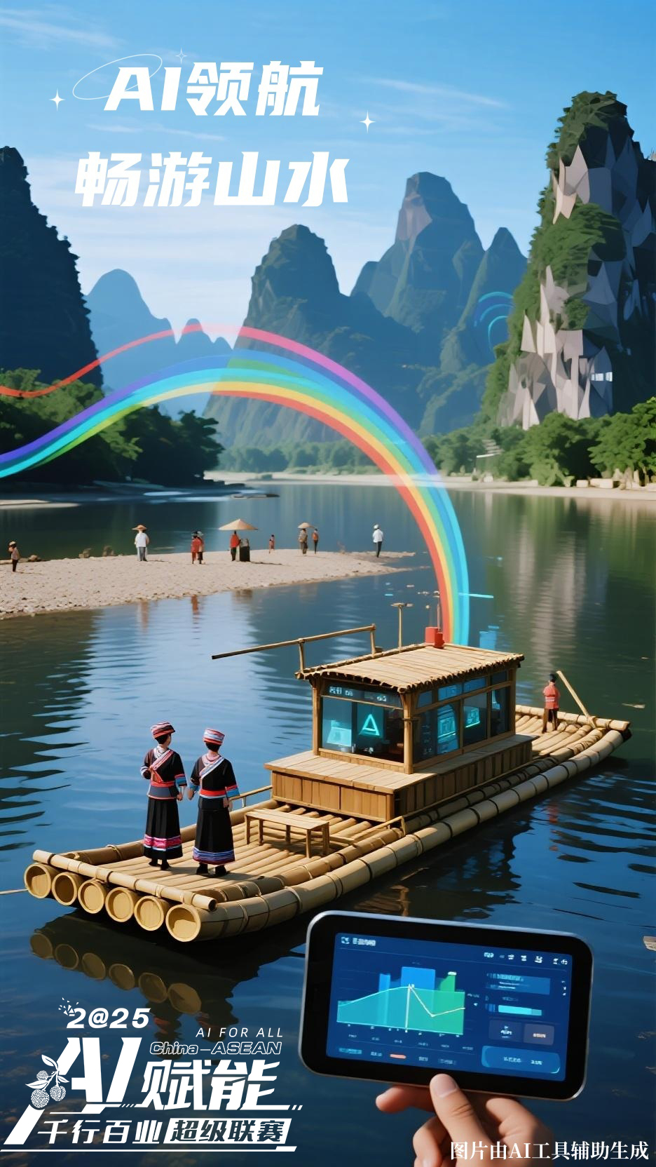 文旅舞臺(tái)上,AI導(dǎo)覽帶您探秘山水,非遺在算法中煥發(fā)新生;田間地頭里,無人機(jī)巡檢智慧稻田,桂品好貨隨智能物流跨越山海;工廠車間內(nèi),機(jī)械臂與代碼共舞,奏響智慧樂章……廣西“AI超級(jí)聯(lián)賽”的英雄帖已備好,9張海報(bào)帶您解鎖AI賦能千行百業(yè)的奇妙場(chǎng)景。