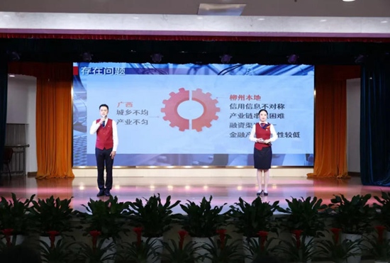 決賽設(shè)置了PPT現(xiàn)場展示與現(xiàn)場答辯兩大環(huán)節(jié),全面考驗參賽隊伍的專業(yè)能力、表達(dá)能力與應(yīng)變能力。柳州銀行派出了陳華雨、陳星宇、張榆闐三名青年突擊隊的骨干,以《普惠潤澤工業(yè)血脈,金融賦能產(chǎn)業(yè)騰飛》為核心主題,通過三個鮮活案例、詳實數(shù)據(jù)詮釋了柳州銀行深耕本土、服務(wù)實體的金融實踐。參賽隊員展示了柳州銀行以“工業(yè)快貸”托舉產(chǎn)業(yè)脊梁,以“科技貸”點亮實驗星火,以“螺螄粉產(chǎn)業(yè)貸”飄香田園,把“民生金融”送進(jìn)市井巷陌,為百姓添香增溫的舉措,生動呈現(xiàn)了普惠金融穿透傳統(tǒng)工業(yè)、高新技術(shù)、特色食品三大賽道,為企業(yè)和個體工商戶“輸血補氣”,為柳州打造“萬億工業(yè)強市”注入金融動能的責(zé)任擔(dān)當(dāng)。
